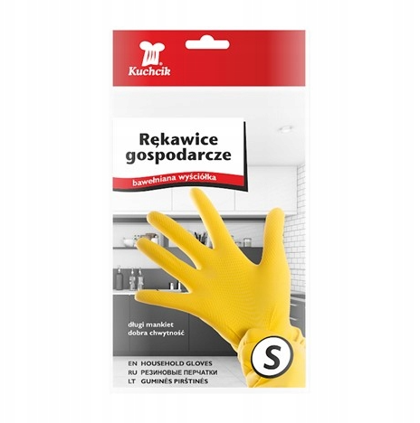 Protejează-ți mâinile și brațele în timpul treburilor casnice și activităților de grădinărit cu Mănușile de uz casnic Kuchcik, mărimea S. Concepute pentru confort și siguranță, aceste mănuși protejează pielea împotriva detergentilor agresivi, umidității, tăieturilor minore și a temperaturilor moderate (până la 50°C).