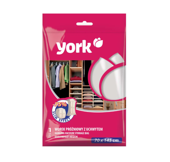 Aerul este eliminat rapid cu ajutorul unui aspirator, reducând volumul articolelor depozitate cu până la 75%. Sacul este echipat cu un dispozitiv special de agățare, permițând depozitarea verticală în dulap, dar poate fi așezat la fel de bine sub pat, pe raft sau în orice spațiu îngust.