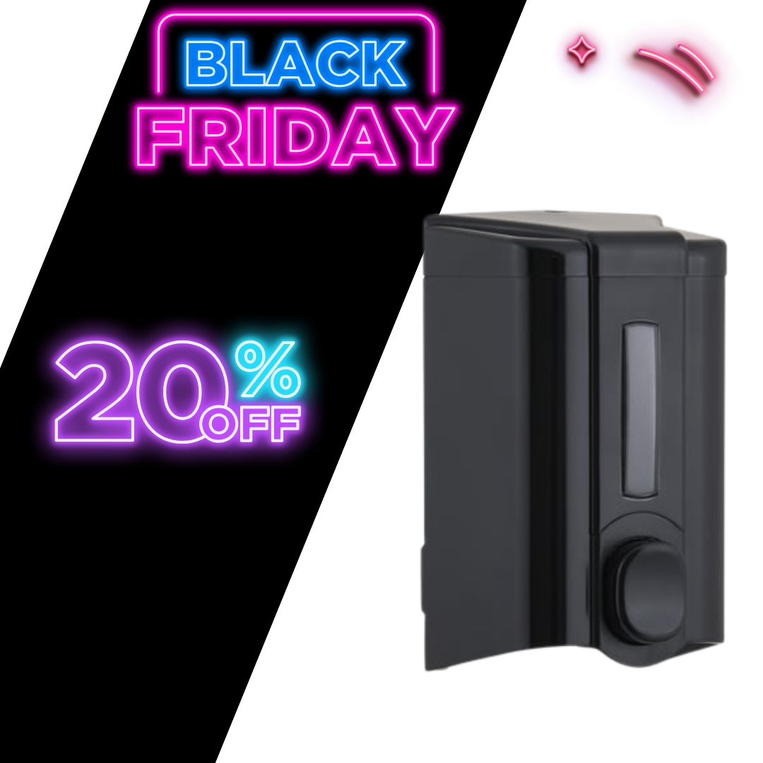 Dispenser sapun lichid,Vialli,utilizare manuala,material plastic negru,capacitate:500ml,montare pe perete.Dimenziuni:L=90mm,l=90mm,h=160mm