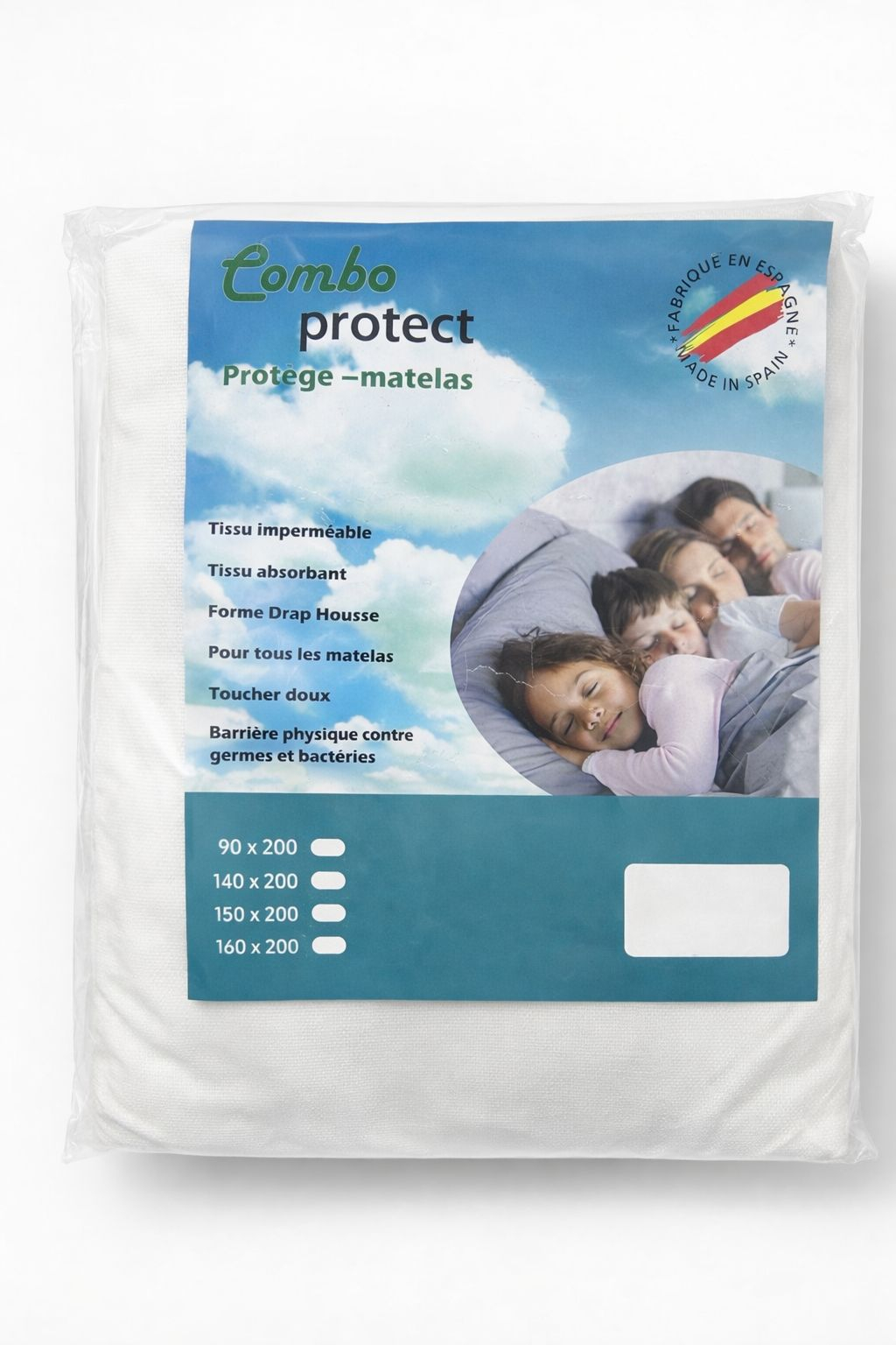 Protecție de saltea Combo Protect, concepută pentru confort și protecție. Partea superioară din bumbac tricotat și partea inferioară din poliuretan, respirabilă, silențioasă, răcoroasă la atingere și rezistentă la umiditate.
